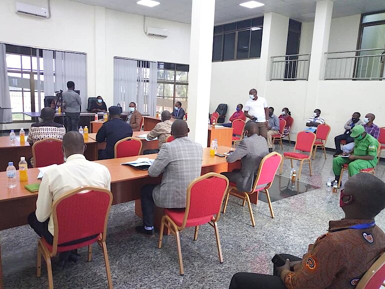 Yakiriwe n’Umuyobozi w’Akarere Bwana Ntazinda Erasme ari hamwe na Komite Nyobozi, Abagize Inama y’Umutekano itanguye ndetse n’abayobozi b’amashami mu Karere. Umuyobozi w’Akarere yagaragaje muri rusange imiterere y’Akarere ka Nyanza, icyerecyezo cy’Akarere, imishinga y’iterambere iri gushyirwa mu bikorwa harimo agakiriro, iteganyijwe ndetse n’ikeneye ubuvugizi.