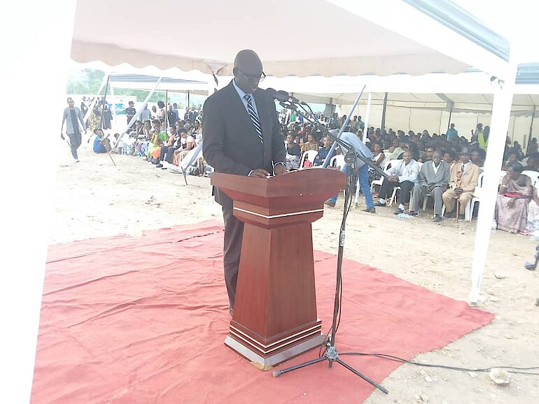 Minisitiri w'ubutabera ageza ijambo ku bari bitabiriye uyu muhango