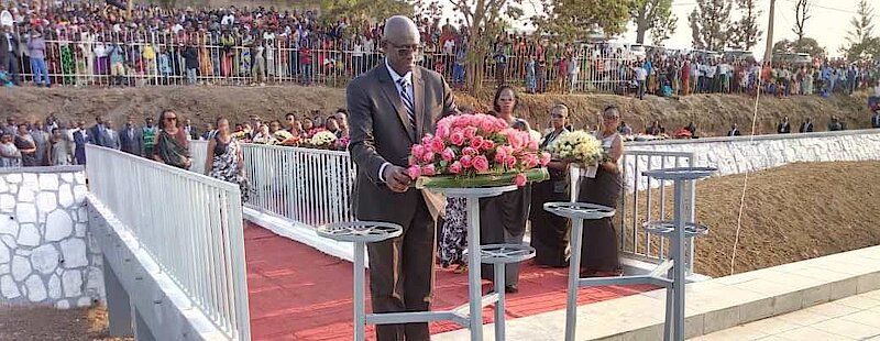 Umuhango wo kwibuka wasojwe no gushyira indabo ku rwibutso ndetse no kunamira abasaga ibihumbi 85 bashyinguye mu rwibutso rwa jenoside yakorewe abatutsi mu Mayaga.